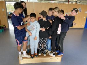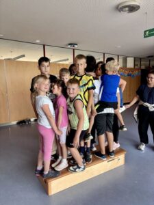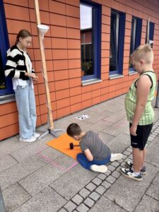 Im Vordergrund standen vor allem Spiel und Spaß miteinander. Mal halfen die großen Schülerinnen und Schüler den jüngeren Schülerinnen und Schülern. Dann wiederum war die Größe der Kleineren von Vorteil.