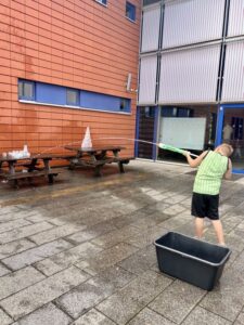 Dabei ging es darum ein Wikingerboot zu steuern, Wasser mit einem Schwamm zu transportieren, Gerüche zu unterscheiden, Bobbycar zu fahren, Ziele mit Wasser zu treffen u.v.m.
